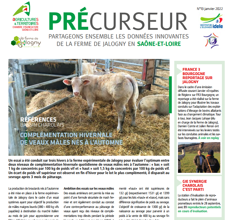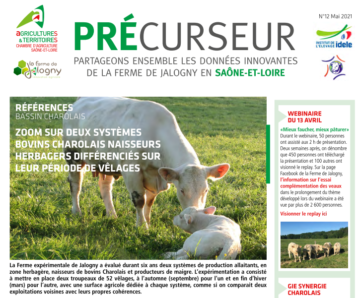 Précurseur 12 – ZOOM SUR DEUX SYSTÈMES BOVINS CHAROLAIS NAISSEURS HERBAGERS DIFFÉRENCIÉS SUR LEUR PÉRIODE DE VÊLAGES